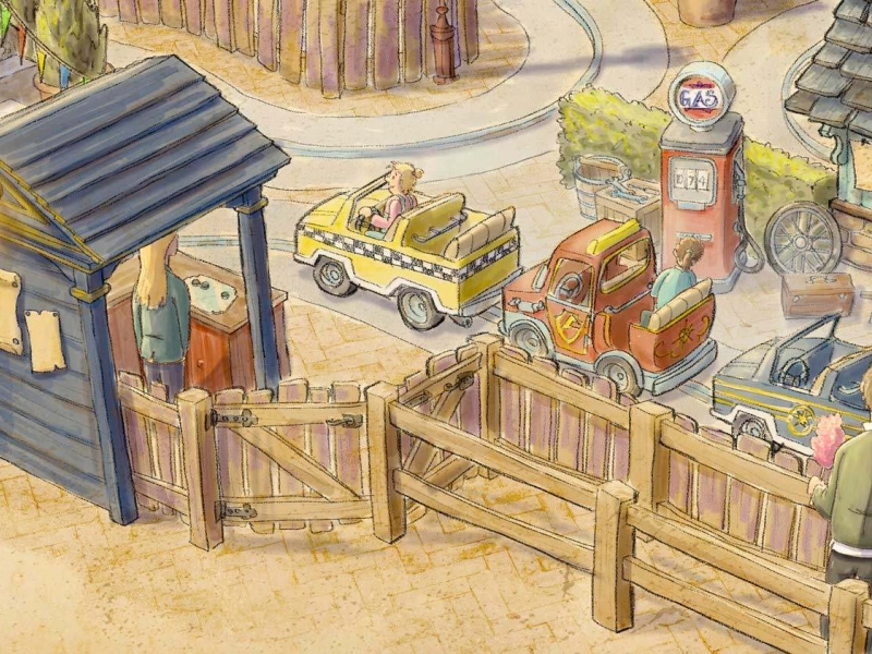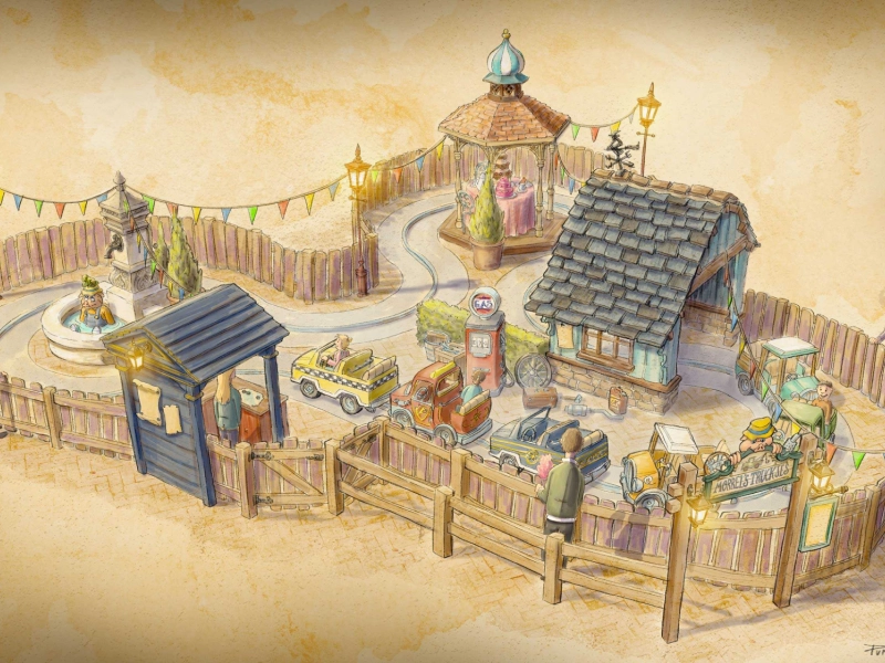 Langs het parcours rijd je door onder andere door een dorpspomp, een chaotisch theekransje en Morrels garage. Met details als vlaggetjes en klassieke verlichting voelt het geheel als een levendige tuin.