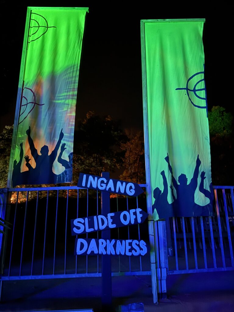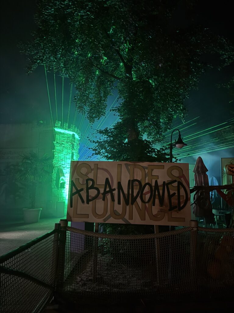 Liever een zone waar je tot rust kunt komen? Nieuw dit jaar is Abandoned Slides Lounge: een gebied aan de zijkant van het slidepark waar een DJ geheel in thema voor de beste beats zorgt en waar een horecapunt met terras te vinden is. Onderdeel van deze ‘chill zone’ is Slide of Darkness. Dit is een tent die gevuld is met rook en flikkerende lichten. In combinatie met de DJ-beats op de achtergrond worden de zenuwen hier pas echt getest. Kan jij de uitgang in deze chaos vinden?