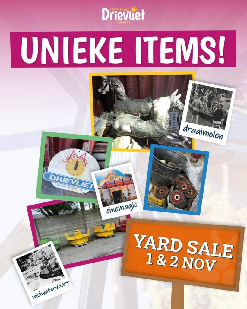 Voor fans van Drievliet, of van pretparken in het algemeen, was het afgelopen weekend een feestje. Het pretpark uit Den Haag hield een ‘yard sale’ waar bijzondere items gekocht konden worden. Een paard, een bootje, achtbaanwielen, je kon het zo gek niet bedenken of je kon het bemachtigen. En dat gebeurde ook zeker.