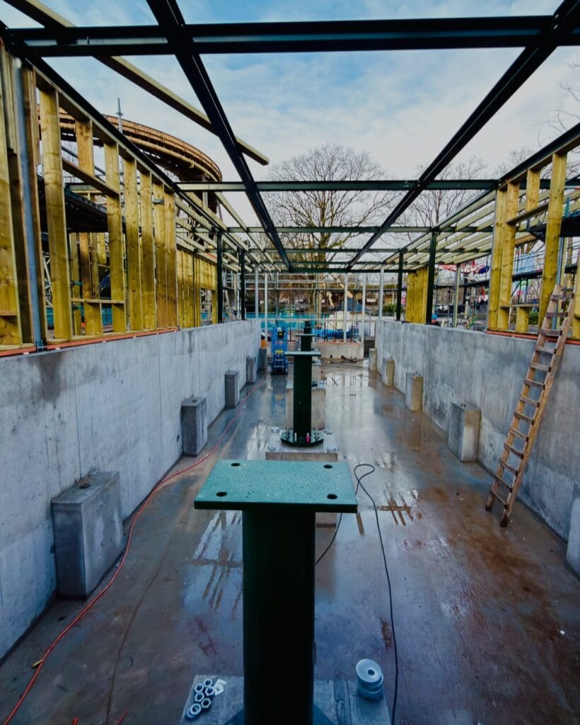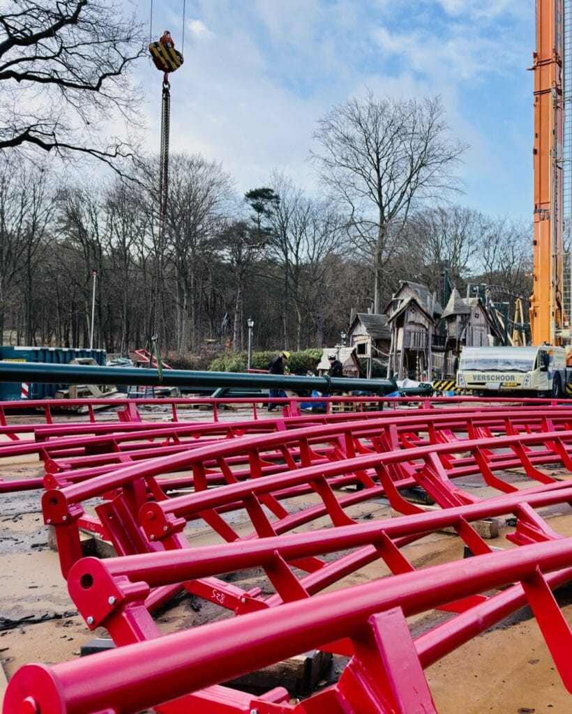 Duinrell heeft inmiddels een update over de opbouw geplaatst. Daarop is te zien dat de lifthill met zijn groene supports al voor een deel overeind staat.