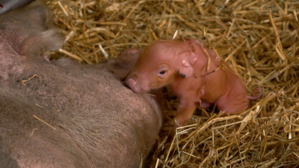 “Deze reuzen zijn niet kieskeurig in wat zij eten. Zij lusten vrijwel alles”, weet Lidwine. “Maar als verzorgers letten wij wel goed op wat zij binnenkrijgen, zodat de biggen gezond en sterk opgroeien.” Dierenpark Amersfoort laat weten dat de biggetjes gewoon zijn te bewonderen op het Boerenerf.