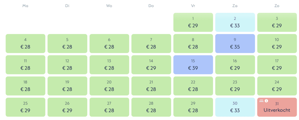 De goedkoopste tickets zijn beperkt beschikbaar. Dat betekent: hoe eerder je je bezoek plant, hoe groter de kans dat je die vanafprijs van €29 kunt bemachtigen, zelfs op populaire dagen zoals zaterdagen of midden in de zomervakantie.