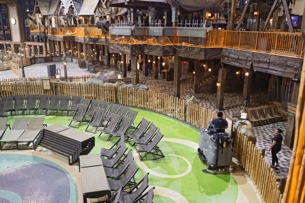 Wanneer waterwereld Rulantica ’s avonds de deuren sluit, gaat voor het team van de nachtdienst de werkdag pas echt van start. Teamleider Viktor Usbek en zijn collega’s geven een kijkje in het proces die tot 6.00 uur duurt. De normaal bruisende waterwereld ligt er stil en donker bij, een bijna surrealistisch gezicht. “Wij zorgen ervoor dat alles de volgende dag weer netjes en schoon is,” legt hij uit. “We reinigen de vloeren, baden, wachtrijen, attracties en afvoeren. Er is altijd veel werk.”