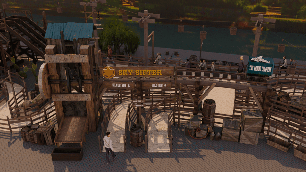 Sky Sifter is 30 meter hoog en biedt twee wachtroutes: goud of zilver. De keuze begint al vóór de rit. Onderweg ontdekken bezoekers de uitvindingen die de sheriff achterliet tijdens zijn zoektocht naar rijkdom. De thematisering en wachtrijen zijn ontwikkeld samen met Leisure Expert Group en sluiten naadloos aan op het Western-karakter van het park.